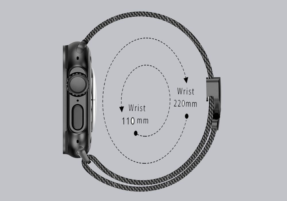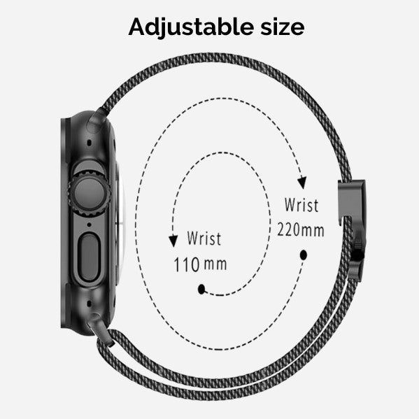 This watch band is crafted to offer a perfect fit for all, with a versatile sizing range from 110mm to 220mm.